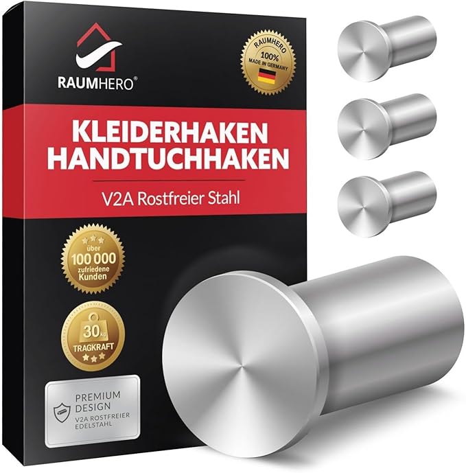 | Raumhero | Edelstahl | Einzelhaken / Tragkraft | 30 kg Tragkraft, 100% Made in Germany |